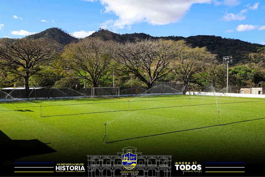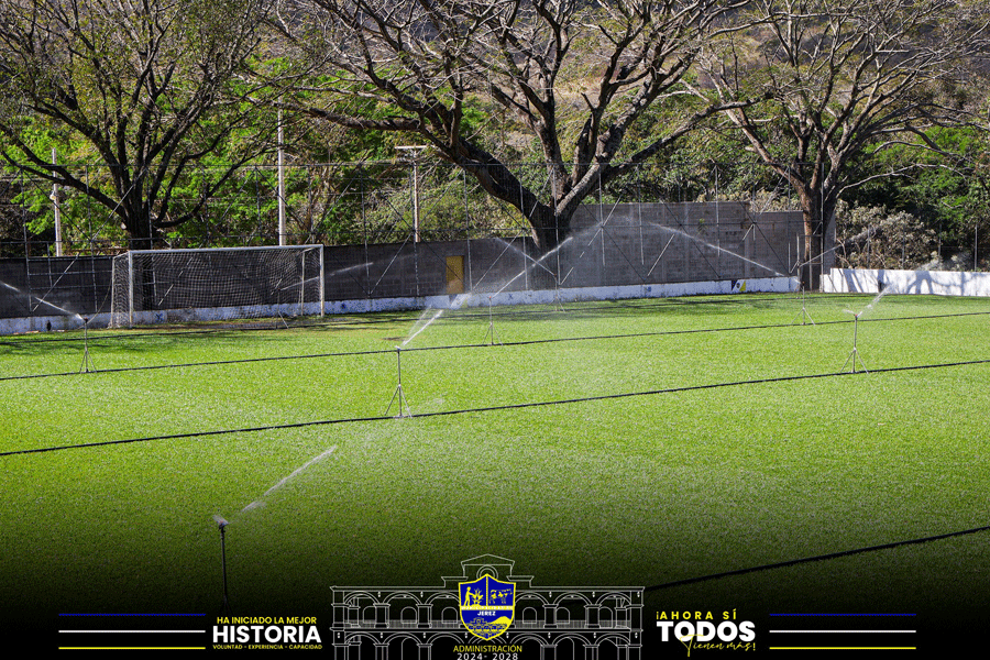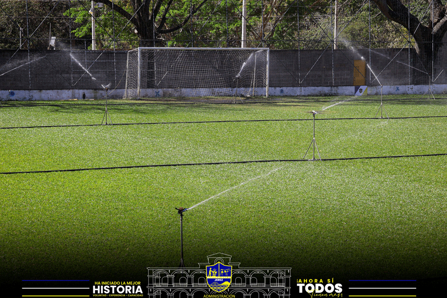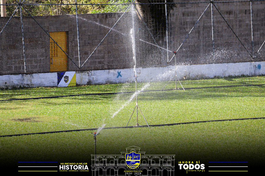 Riego constante para fortalecer el césped y ofrecer un campo digno para nuestros futbolistas